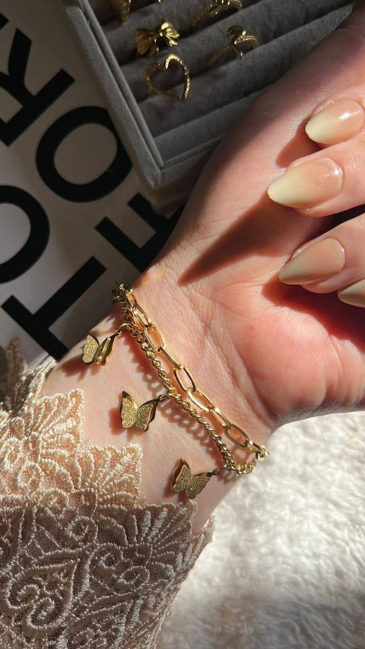 Crafted from premium stainless steel, the butterfly double bracelet is durable, long-lasting, and resistant to tarnish. It maintains its shine over time, making it suitable for everyday wear while keeping its elegant appearance.