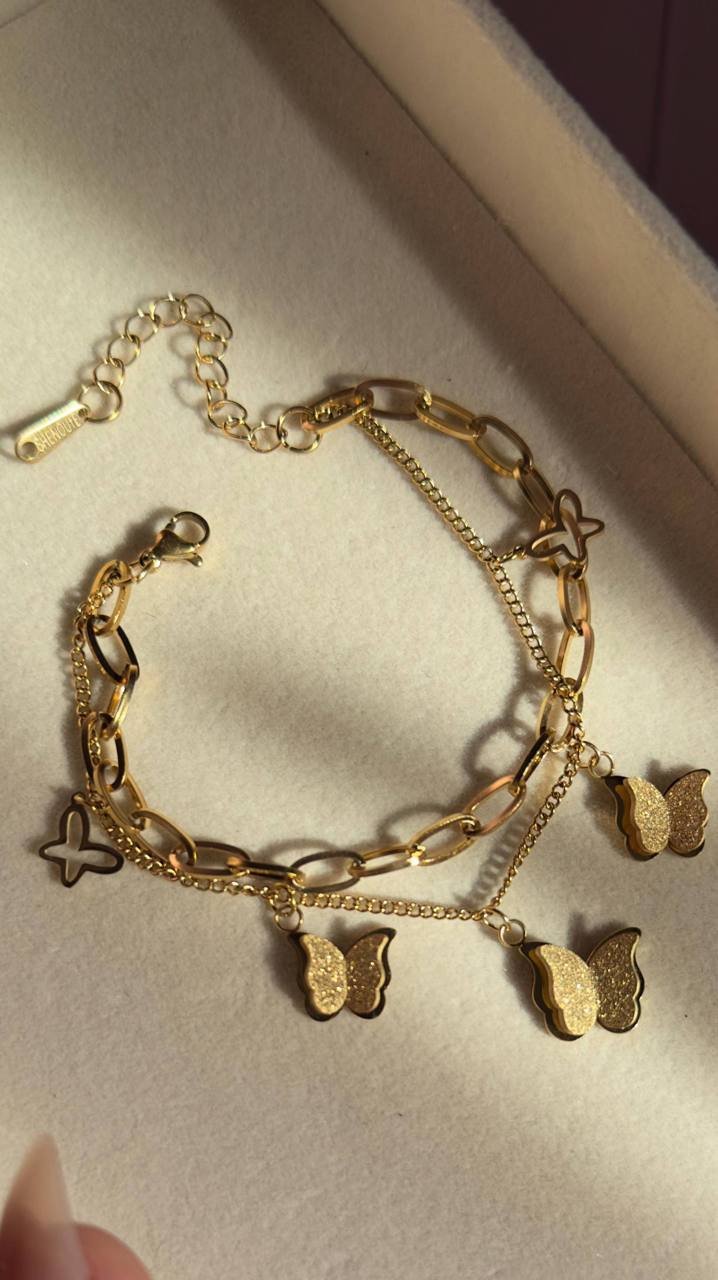 Made from premium stainless steel, the butterfly double bracelet ensures strength, comfort, and a polished finish that stays shiny with proper care.