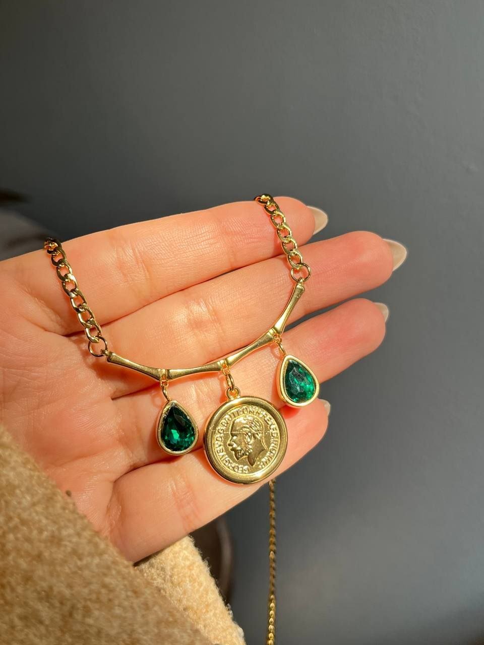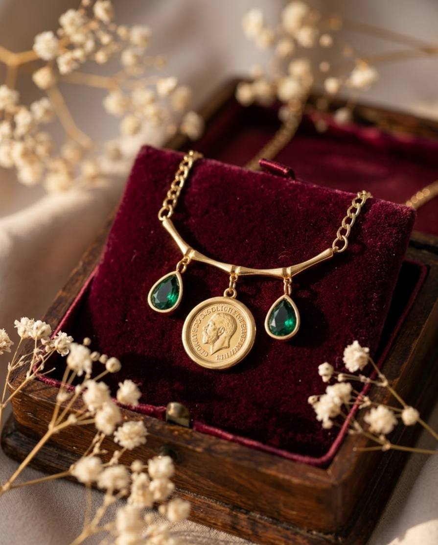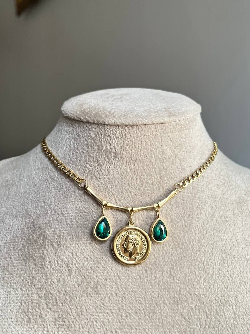 Coin with green diamonds Necklace