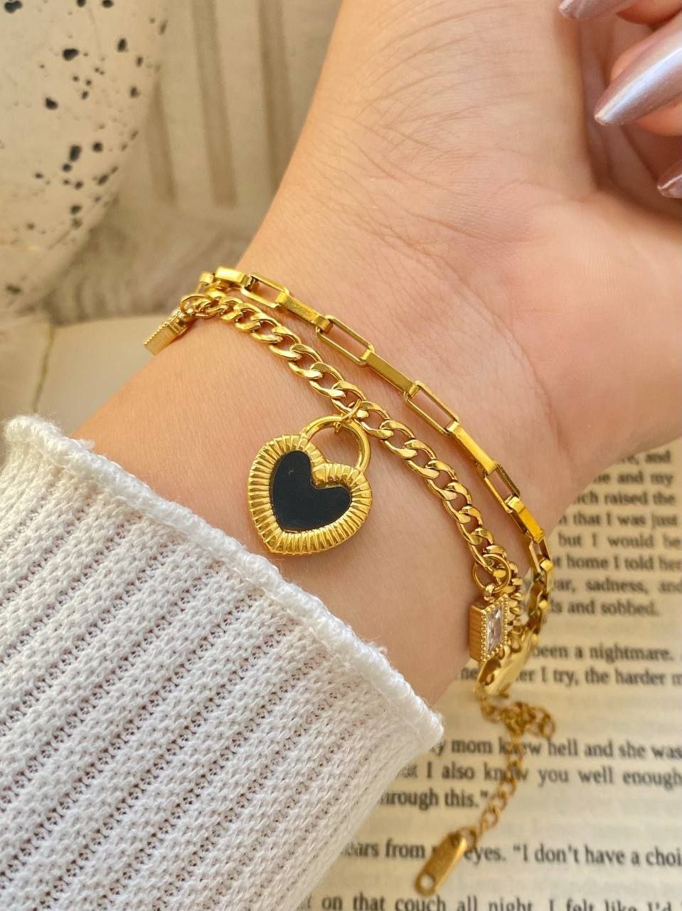 Crafted from high-quality stainless steel, this bracelet is designed to last. It offers excellent durability, resistance to tarnish, and long-term shine, making it suitable for daily use. The polished finish adds a luxurious touch, while the black and white heart design creates a beautiful contrast that stands out effortlessly.