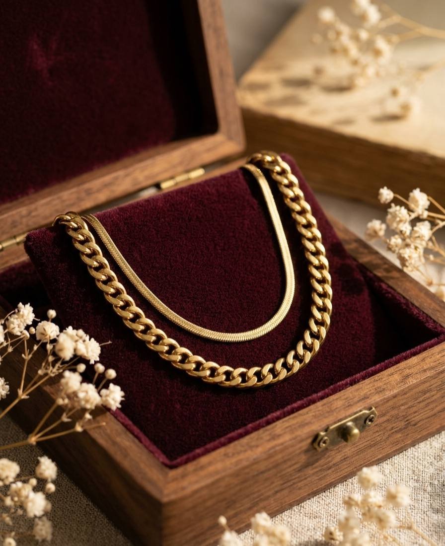A stylish Necklace designed to add a subtle shine to your everyday look. Made from high-quality stainless steel with gold plating, this piece is lightweight, elegant, and perfect for daily wear or special occasions.