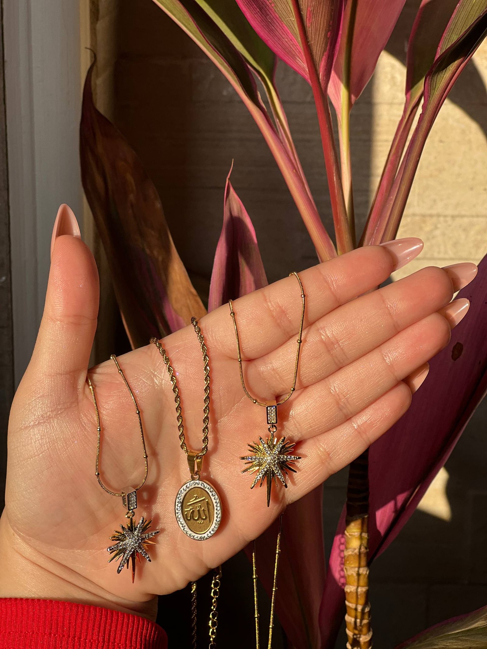 A stylish necklace designed to add a subtle shine to your everyday look. Made from high-quality stainless steel with gold plating, this piece is lightweight, elegant, and perfect for daily wear or special occasions.