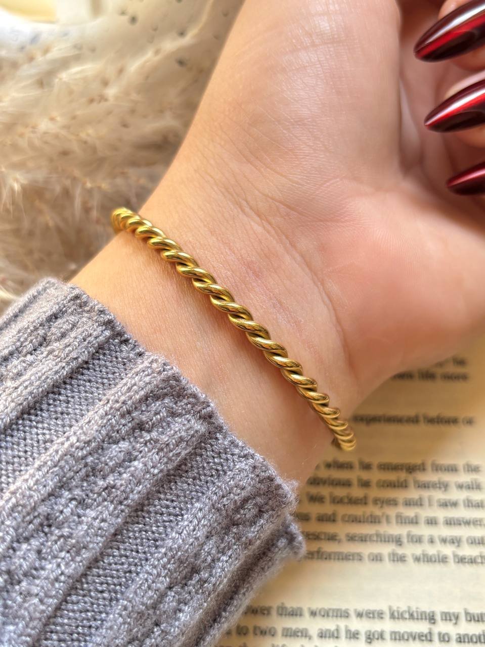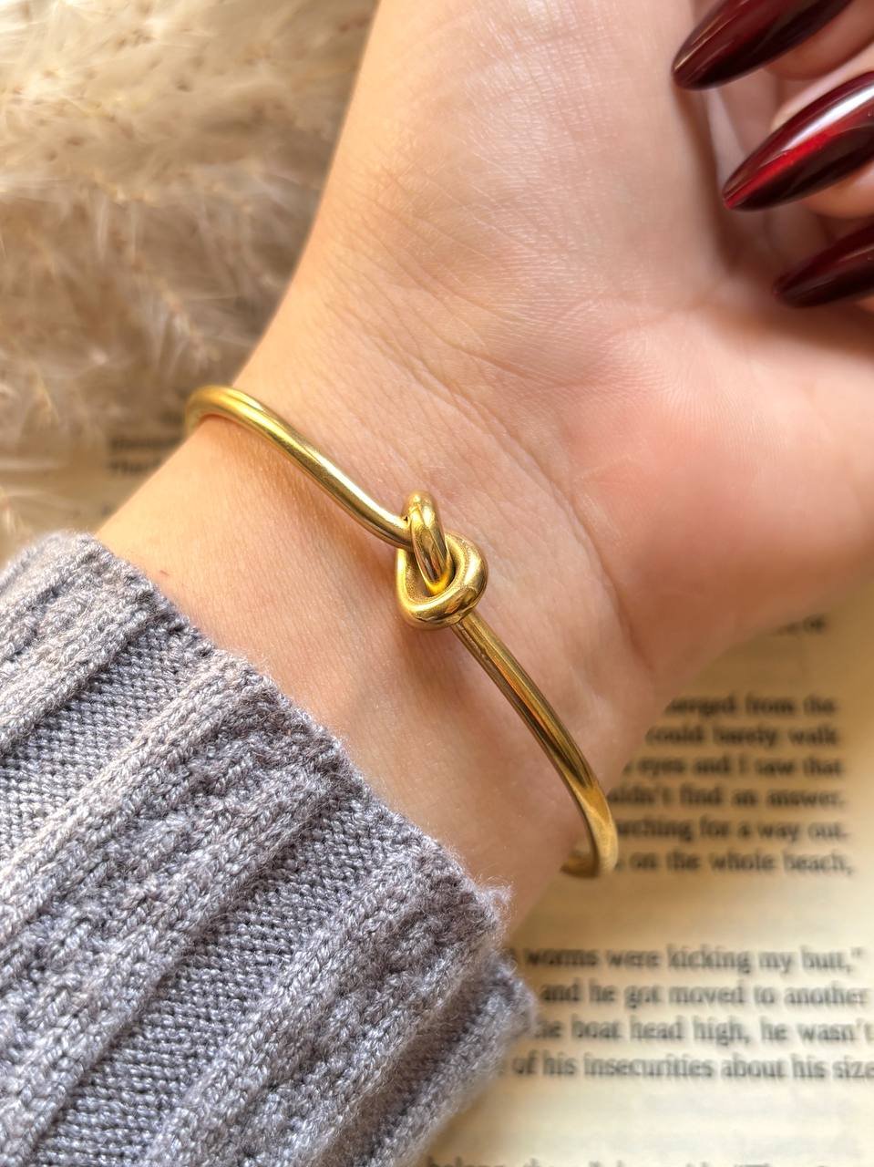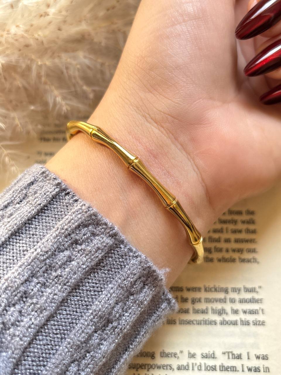 This set of 3 bracelets bamboo knot braid is designed for stacking but can also be worn individually for a minimal elegant look. It matches casual outfits, office wear, and evening styles.